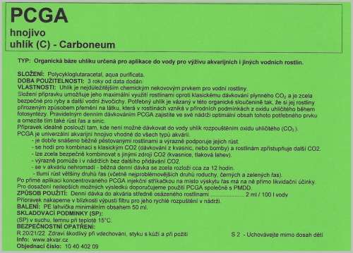 fotosyntézy. Pravidelným denním dávkováním PCGA zajistíte ve své nádrži optimální obsah tohoto potřebného prvku